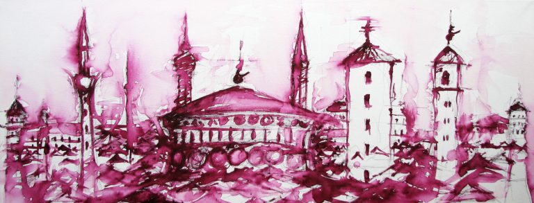 watercolors on canvas, size 100×30 cm
