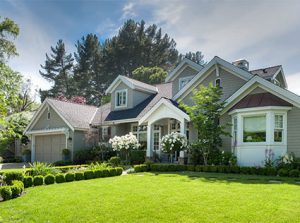 When we teamed up with this young family for a renovation, we created an outdoor space satisfying the needs of all the members of their family. An outdoor fireplace and cooking area provide spaces for evening socializing. The landscape has multiple activity areas for the children — a lawn, a lap pool specially designed for games of water volleyball, and a sport court. Tucked away behind the Japanese maples is an outdoor shower that allows for a refreshing dip amid nature.Throughout the landscape, we mixed formality with touches of whimsy — spiral topiary boxwood, bright dashes of colorful flowers, contrasting textures.