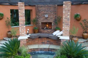 Water feature and outdoor fireplace